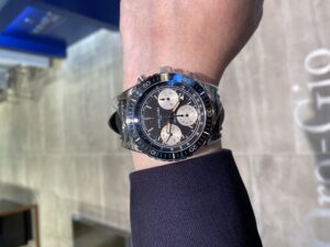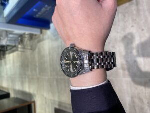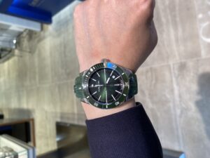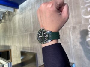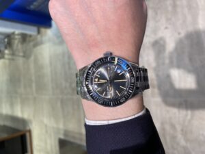 文字盤に刻印されている「DEEP BLUE」は元々同名のコレクションでしたが、商標登録が行われていたため急遽「DEEP RAIDER」に変更。