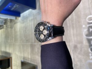 文字盤の外側にタキメーター、内側にテレメーターが備わっており、実用的な一本です。