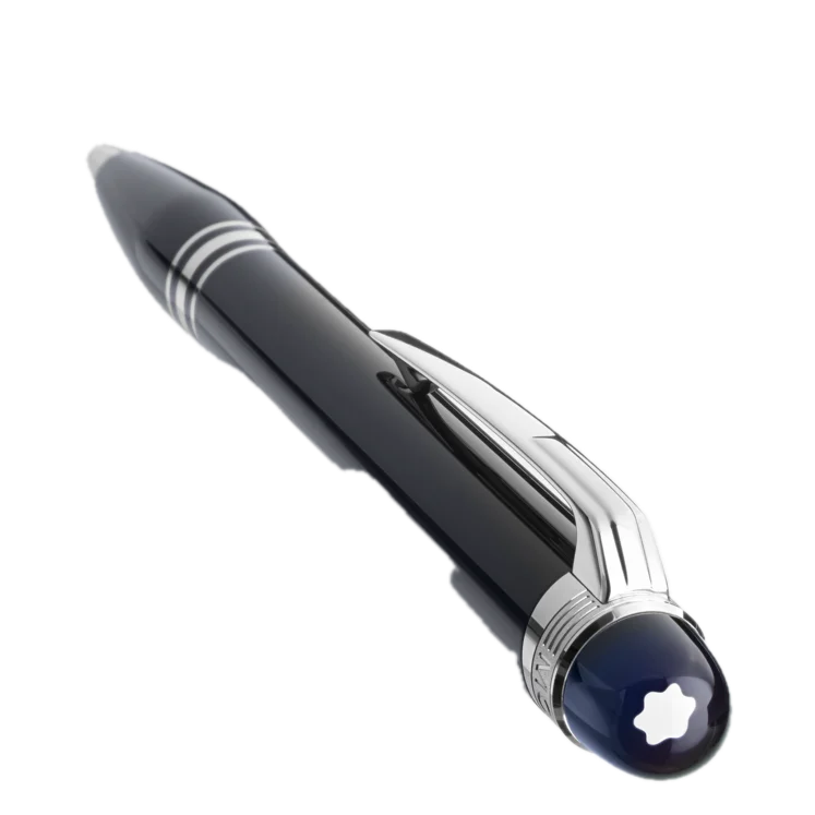 スターウォーカーの新作は星の中の散歩をイメージしています。それは宇宙と銀河を探査する旅のようなもの、つまり人類の冒険の中でも最もミステリアスでパワフルな宇宙の探査です。このコレクションの新デザインは、広大な宇宙に浮かぶ青い惑星を眺める宇宙の旅人たちの計り知れない熱い思いを伝えます。ユニークなスターウォーカーのシンボルマークの技術を駆使し、月平線の上方に現れた地球に思いを馳せ、モンブランのシンボルマークの下にブルーの半透明のドームをあしらいました。スターウォーカー ドゥエには、プラチナコートのフィッティング、またブラックのプレシャスレジンのボディが採用されています。